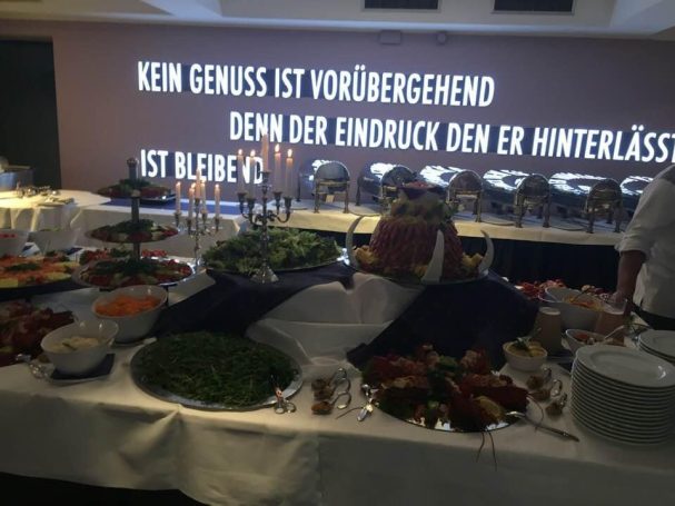 Im Jahr 2023 durften wir ein hochklassiges Buffet für die Dozenten und Mitarbeiter der IU Hochschule in Bad Honnef zubereiten. Mit erlesenen, hochwertigen Zutaten und fein abgestimmten Gerichten entstand ein kulinarisches Erlebnis auf höchstem Niveau.